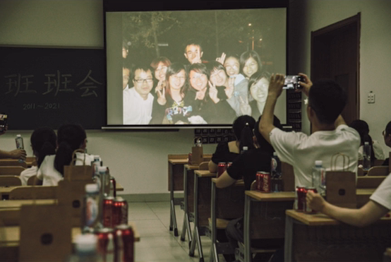 而后,毕业生到当年上课的教室,坐在自己以前经常坐的座位上追忆当年那段美好时光。