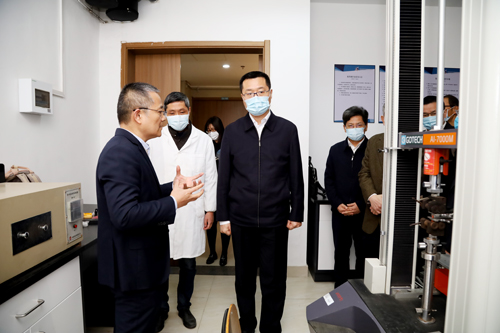卢山一行走访了金沙娱乐城 有机硅化学及材料技术教育部重点实验室,他认真听取金沙娱乐城 来国桥教授关于实验室建设情况、人才培养、成果转化等方面的汇报,了解实验室科研开展情况,进行深入交谈并给予充分肯定。在随后的座谈会上, 卢山对学校发展尤其是实验室建设取得的成绩给予肯定。他指出,省市十分重视高校重点实验室建设,地方政府和上级主管部门会努力共同解决涉及学校未来发展的体制、机制、资源等问题,对学校相关实验室建设和申报给予支持帮助。他希望杭师大强化校地沟通交流,进一步提升自身实力,不断涌现高层次人才,产出更多的科技成果。