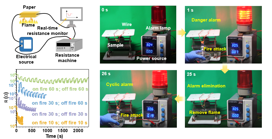 当前,为预防和避免可燃材料的严重火灾风险,大量基于石墨烯的纳米预警材料和传感器被开发。然而,这些材料和传感器仍有一些局限性,例如石墨烯基火灾预警材料的黑色颜色、高成本和单一的火灾预警响应,致使其难以实现商业化应用。因此,亟需开发兼具颜色浅、成本低和可快速循环预警的主动式智能火灾报警材料及传感器。