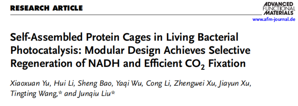 刘俊秋教授团队受天然光合区室化策略启发,构建了由光催化剂、蛋白笼和活细菌组成的三元协同系统,实现了选择性NADH再生与高效CO2固定。该系统包含三个功能模块: